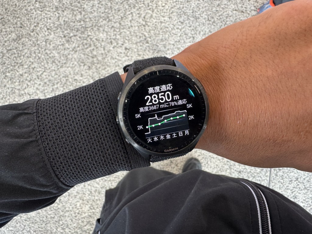 日本国内だとまずあり得ないレベルですね。3,687mに78%適応って….