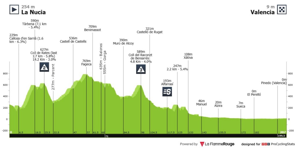 いつもトレーニングで使っているTarbenaからColl d’ Ratesを超えるまさにホームコースですが、逃げが決まるまではかなりハイペースで、体調も相待って死ぬほどキツかったです。